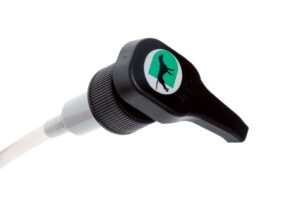 DogVitality doseringspumpe med 5ml per trykk for enkel bruk uten søl. La flasken stå i kjøleskapet og trykk oljen direkte over maten. Enkelt og renslig.